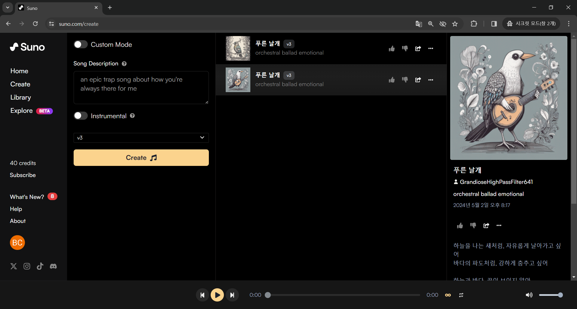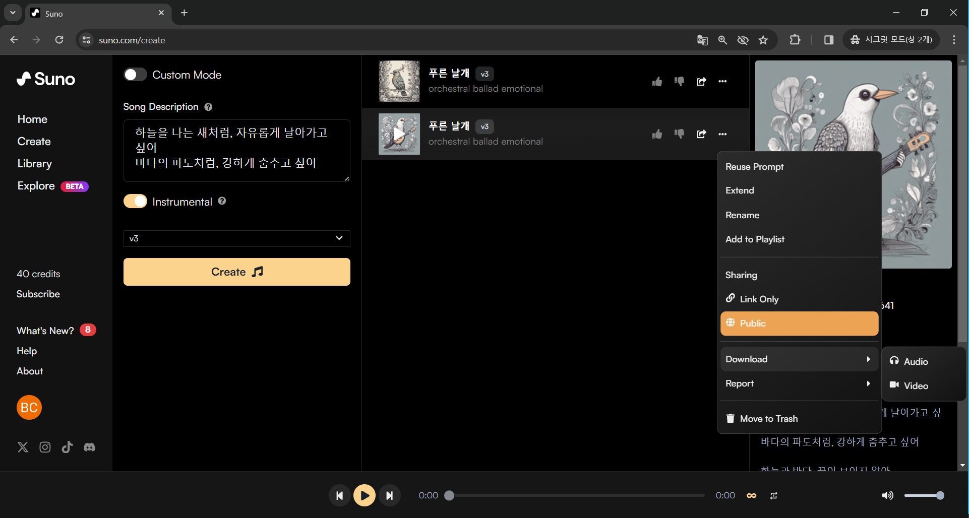 나만의 음악 만들기-suno.com