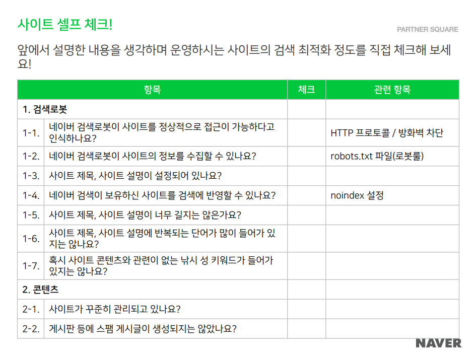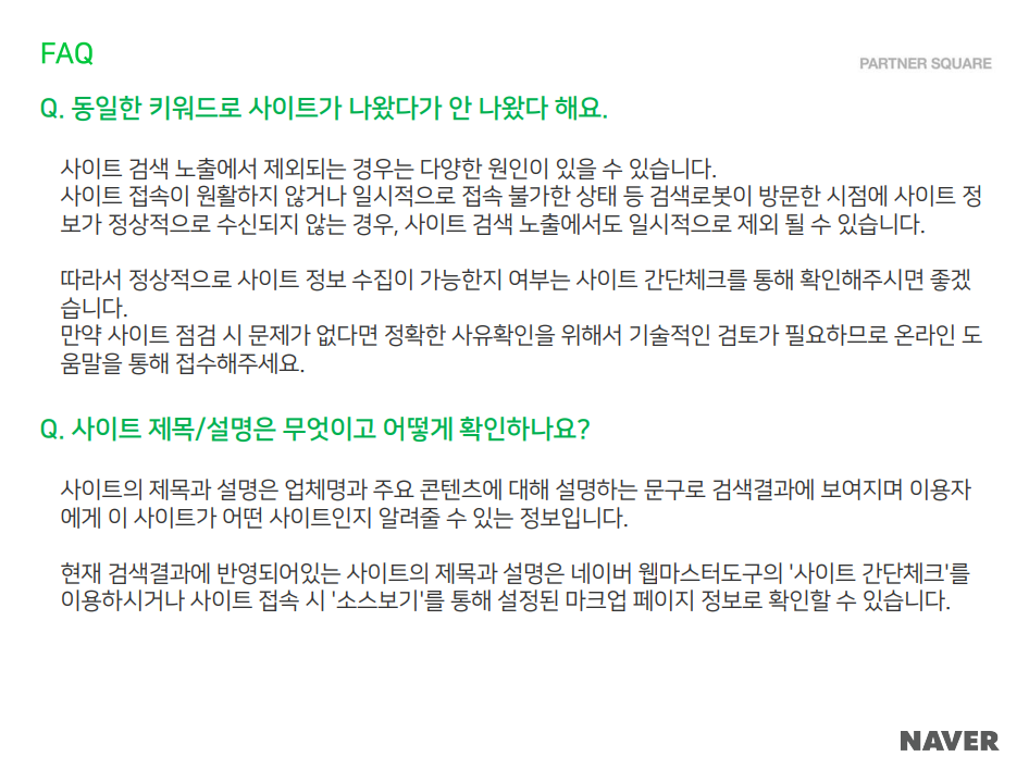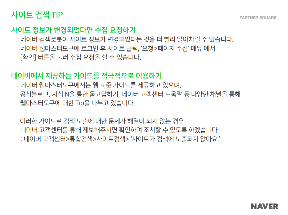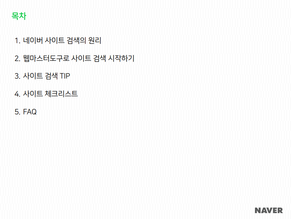 #네이버 사이트 검색의 원리 #웹 사이트의 발견 #웹 사이트의 수집 #웹 사이트의 노출 #웹마스터도구로 사이트 검색 점검하기 #웹마스터도구란? #사이트 등록하기 #사이트 점검하기 #사이트 꾸준히 운영/홍보하기 #사이트 검색 TIP #사이트 체크리스트 #FAQ #SEO #최적화 #SEO최적화