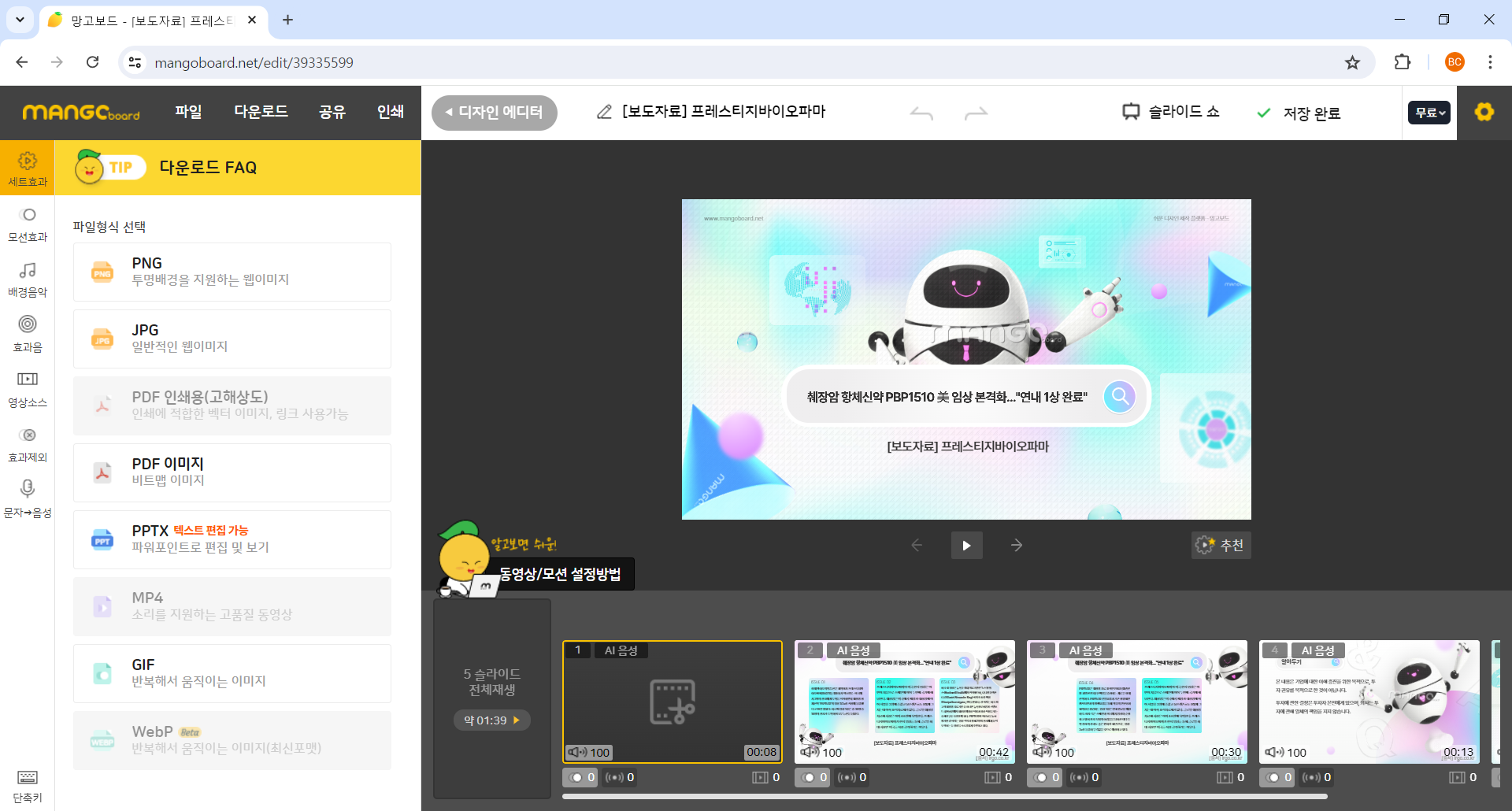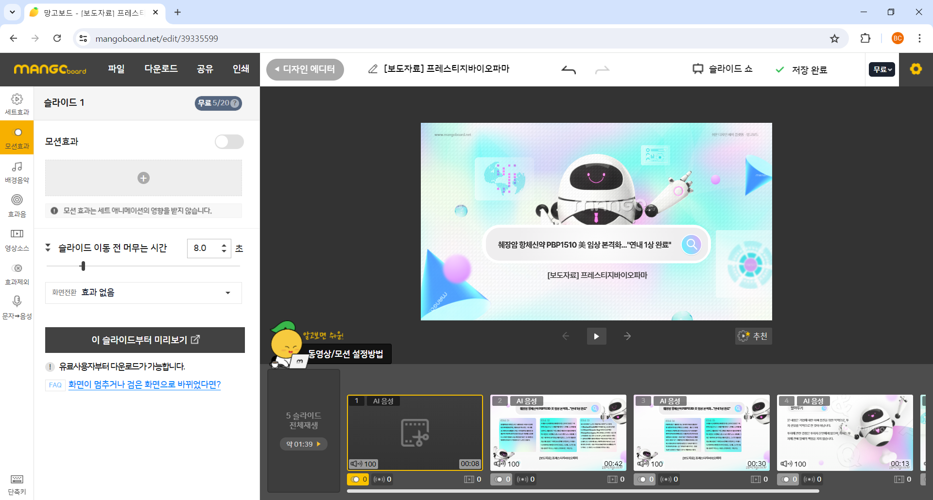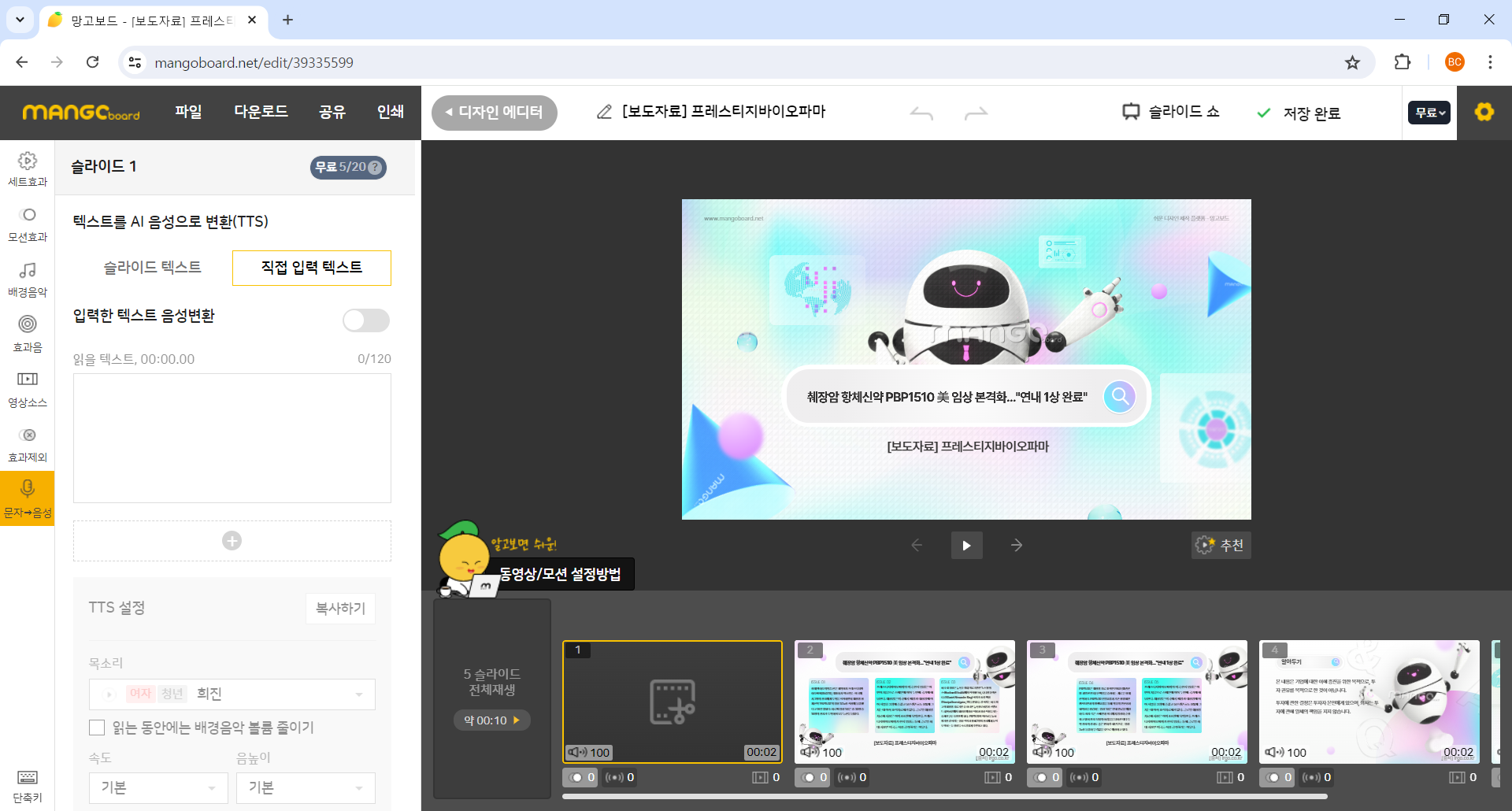 - 망고보드에서 볼 수 있고 음성이 포함된 보도자료 ****이걸로 보세요.****