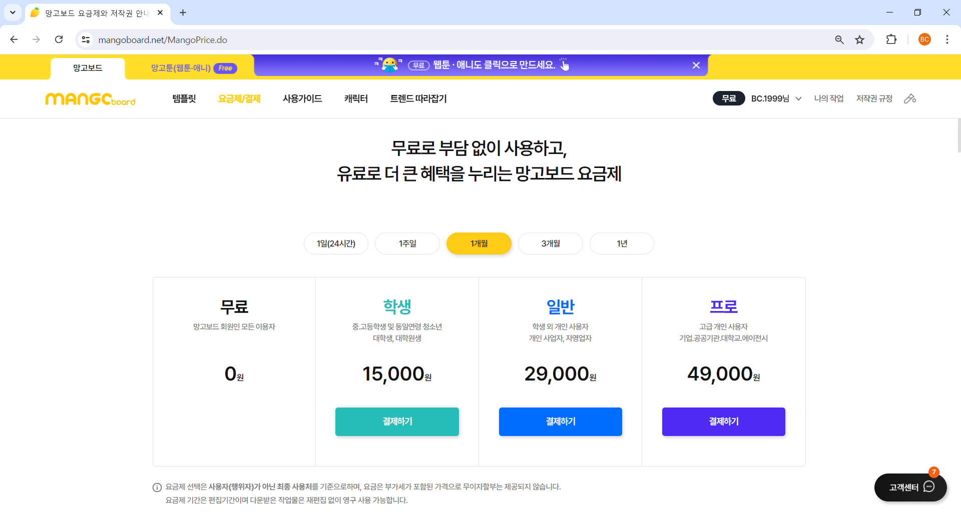 - 망고보드 요금제 알아 보기