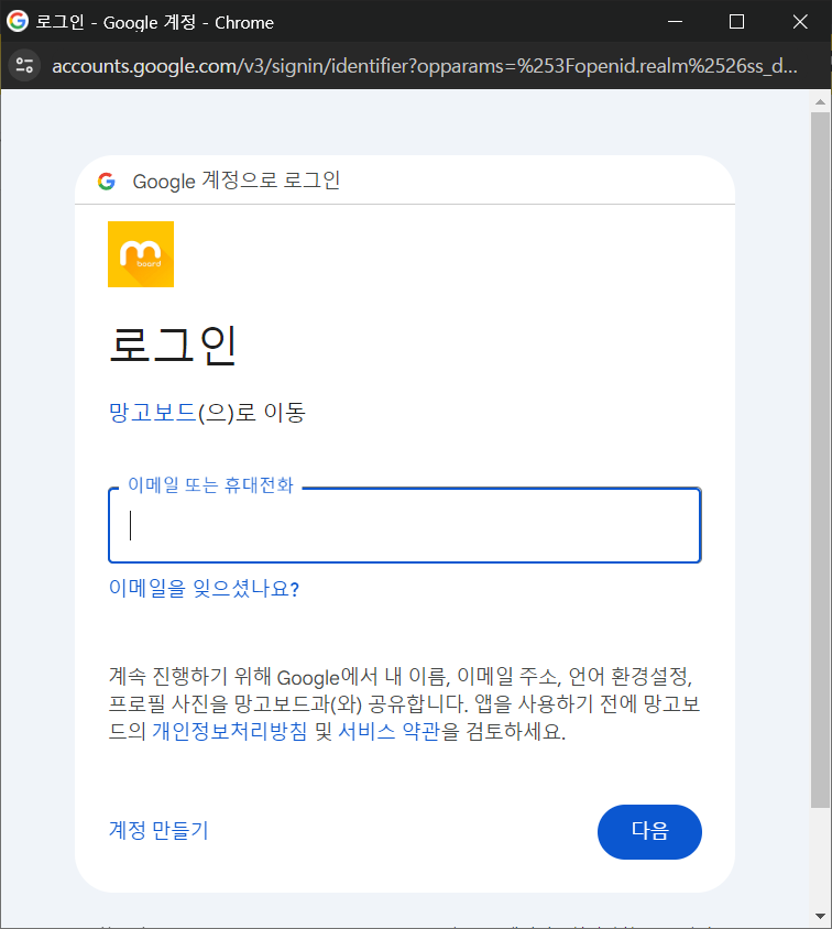 - 구글 선택 후 회원 가입