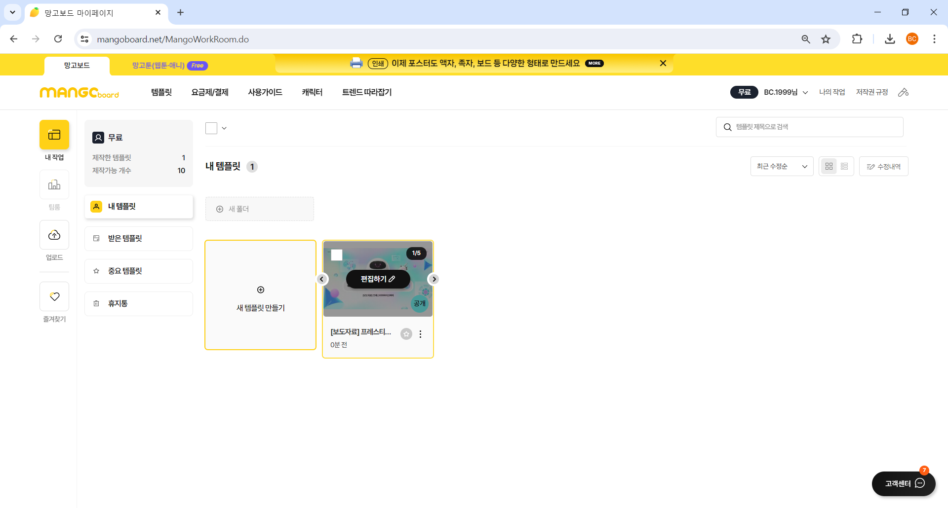 - 무료 : 망고보드 회원인 모든 이용자