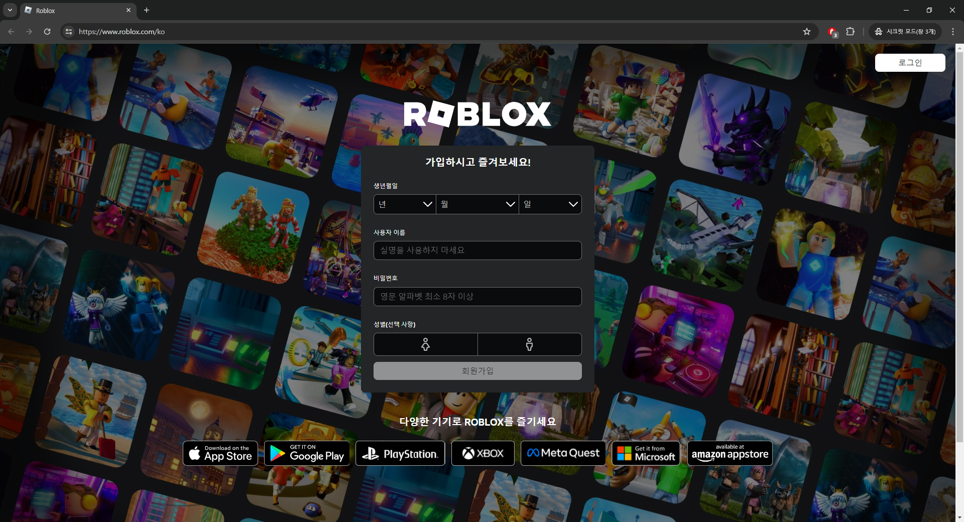 - Roblox 사이트 접속 후 가입하기 : Roblox 홈페이지