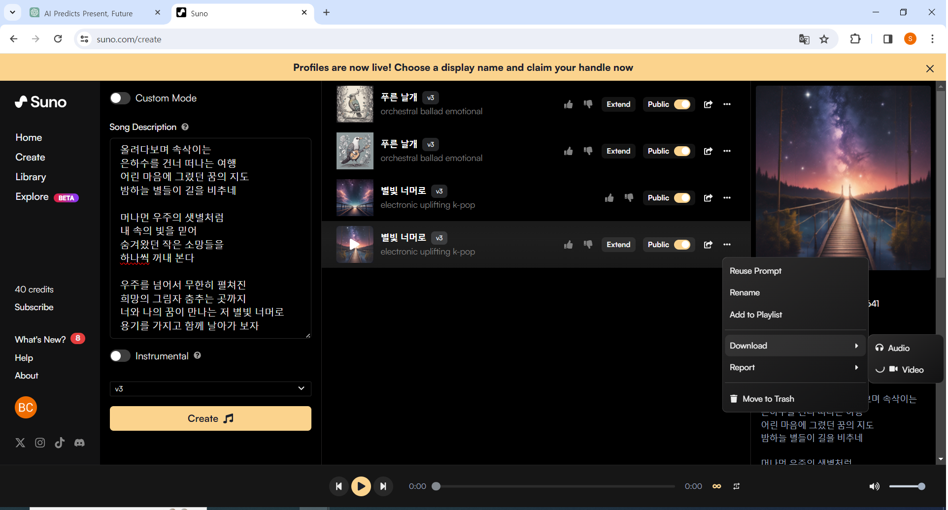 1. 두번째 나만의 음악 만들기-suno.com