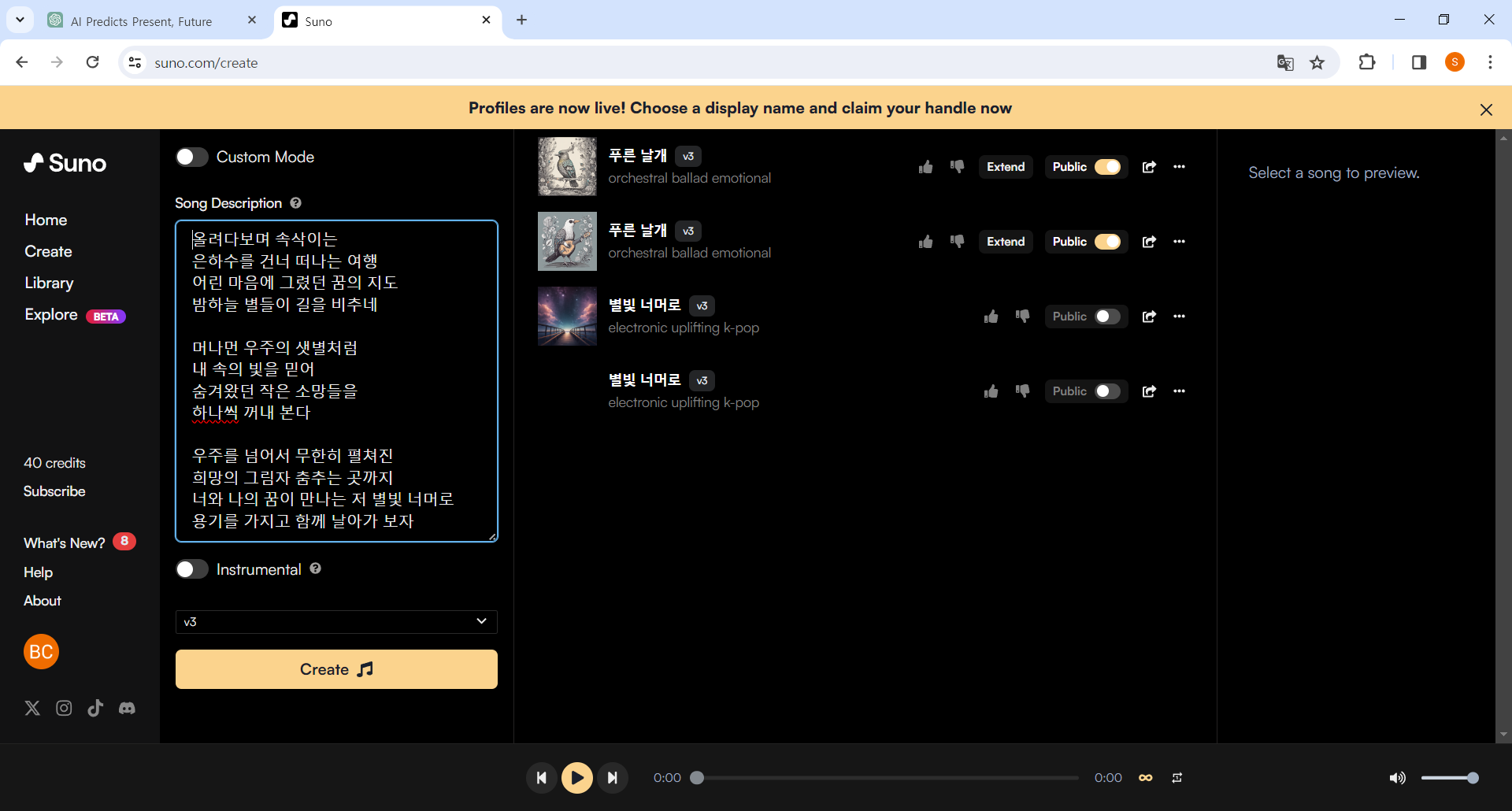 두번째 나만의 음악 만들기-suno