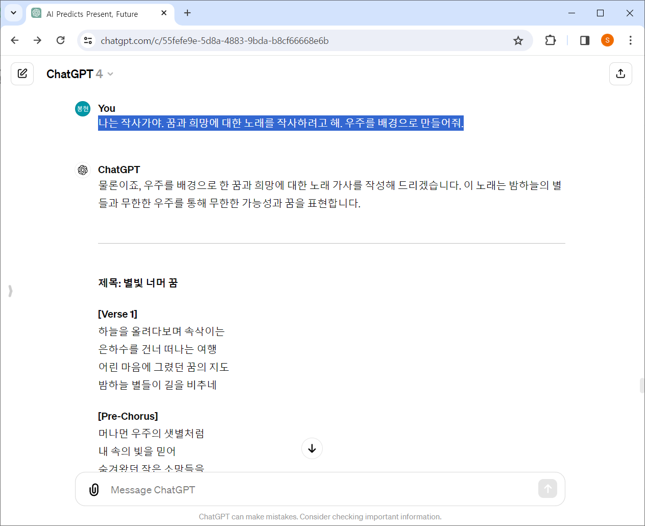 - ChatGPT 를 이용하여 작사 하기 : 바로가기