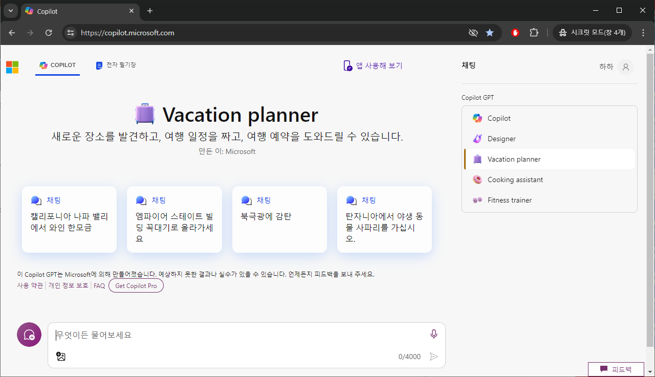 1. MS Bing Copilot 을 이용하여 여행 일정 알아보기
