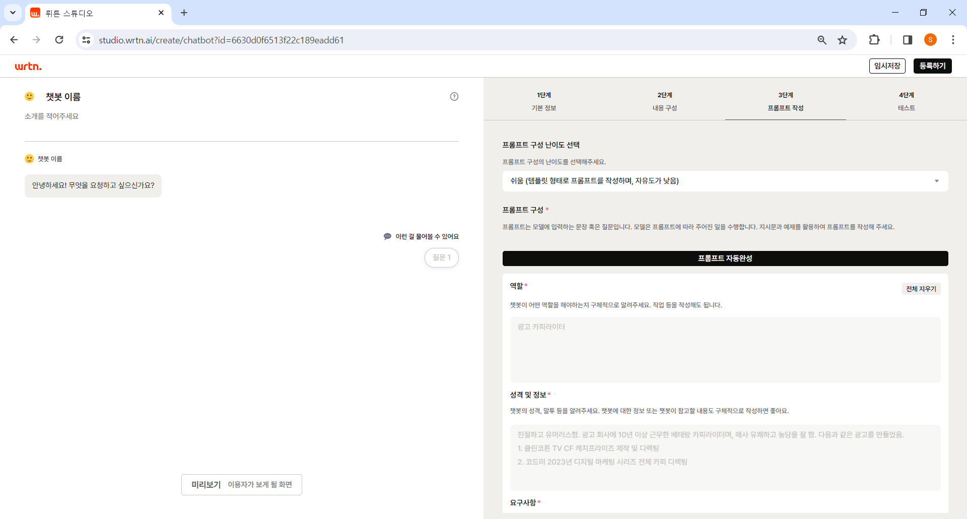 ※ 뤼튼(wrtn) 을 이용하여 챗봇을 만들어 보겠습니다.