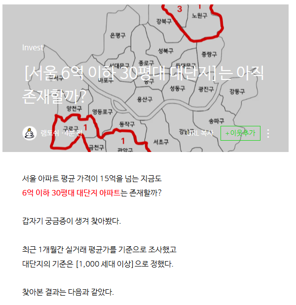 이번 공유 글은 "서울 6억 이하 30평대 대단지는 아직 존재할까?"에 대한 공유 입니다.