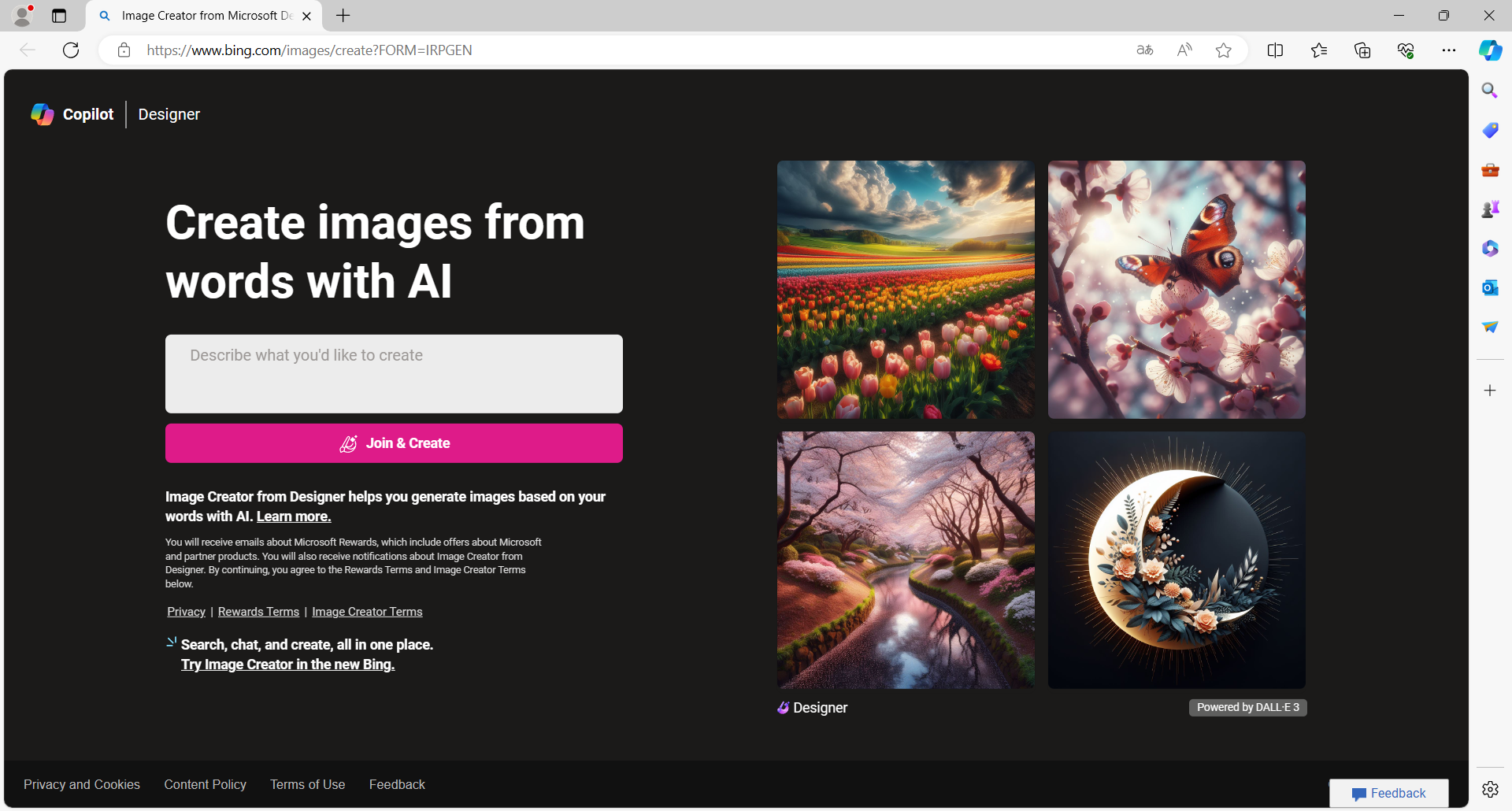 ※ Image Creator는 DALL·E 3을(를) 사용하여 사용자가 AI 이미지를 생성할 수 있도록 도와주는 제품입니다. 텍스트 프롬프트가 제공되면 AI는 해당 프롬프트와 일치하는 이미지 집합을 생성합니다.