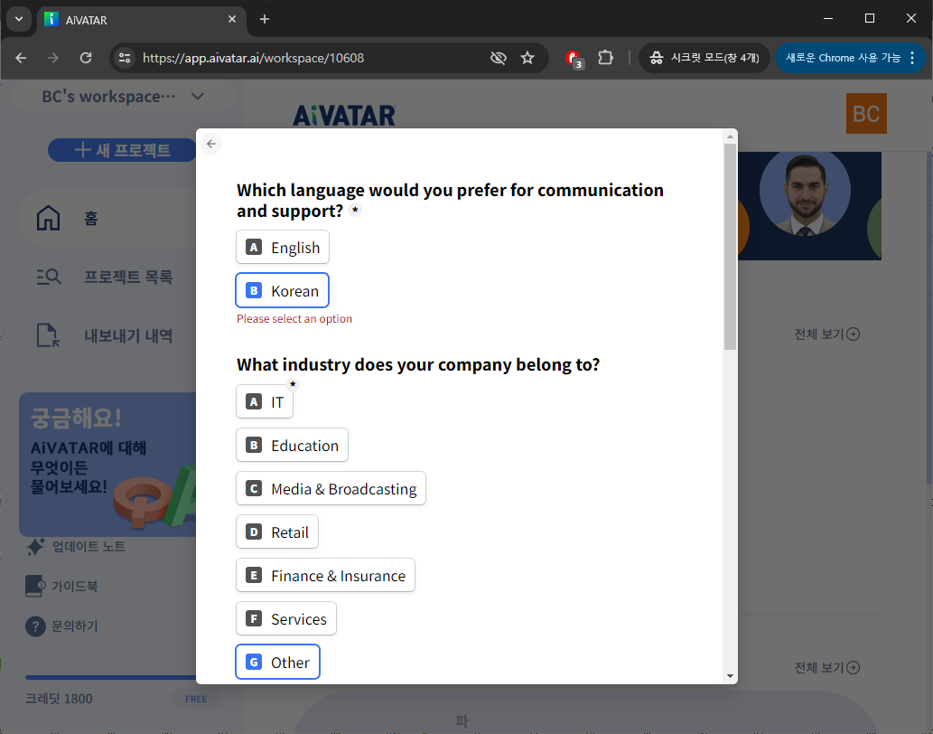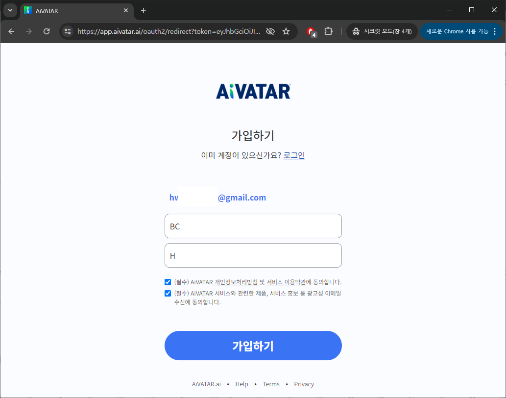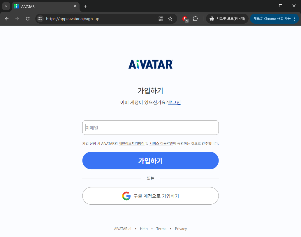 1. AiVATAR 가입하기 : 가입하기