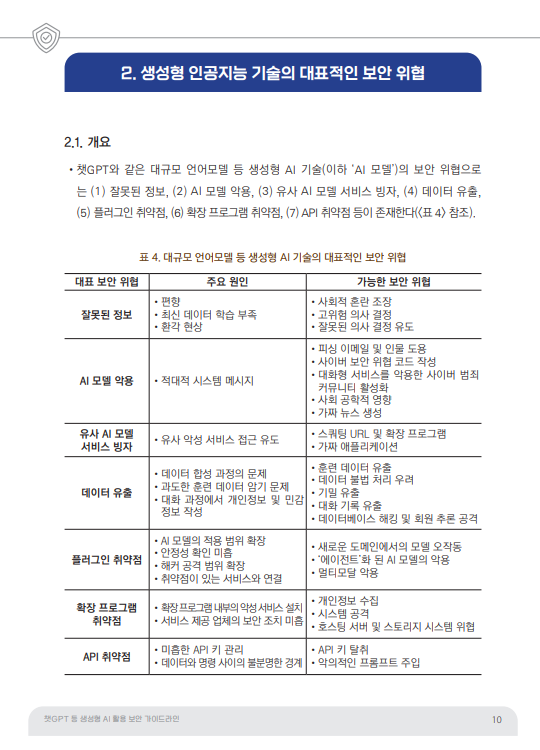2. 생성형 인공지능 기술의 대표적인 보안 위협